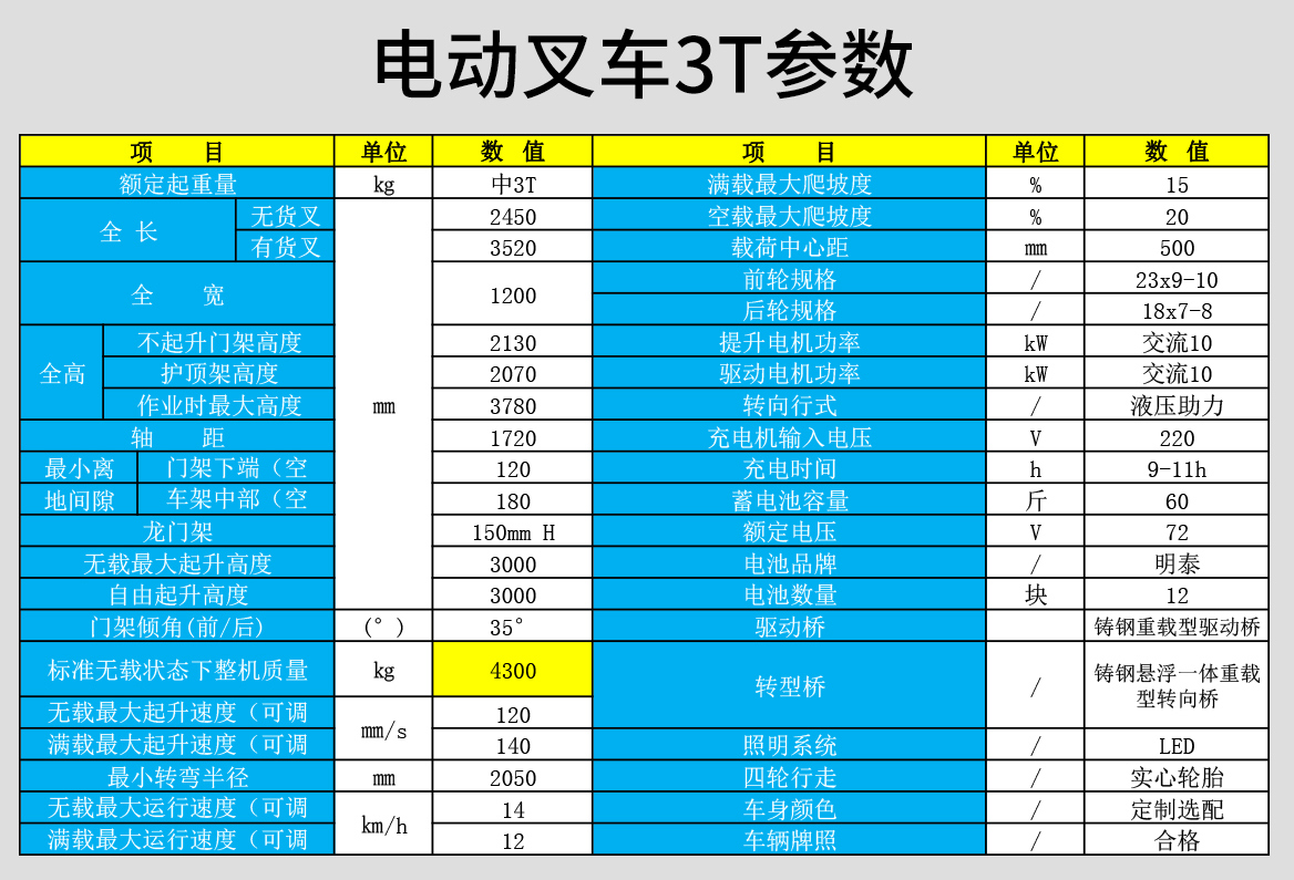 | 自由起升高度 | 3000 | 電池品牌 | / | 明泰 | ||||